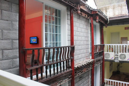 古樸的客房內(nèi),超大陽臺全景落地窗,是您欣賞沱江風(fēng)光帶首選客棧,兩座百年四合院內(nèi)小橋流水,假山錦鯉,一百三十平米休閑花園別具情調(diào)。紅酒加咖啡的大堂吧、彩色精致的情調(diào)房、古典高雅的臨江觀景房以及大型公共觀景平臺,龍閣的點點滴滴都透著出古城的神韻和幽靜,走進(jìn)龍閣客棧,給您一個完美的鳳凰古城沱江全景!