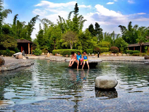 熱水溫泉,位于湘、粵、贛三省交界的熱水鎮(zhèn),是我國南方水溫最高,流量最大,水質(zhì)最好,熱田面積最寬的天然溫泉。熱水水溫一般為 91.5℃,最高達(dá)98℃。熱泉水無色透明,稍有硫化氫氣味,為低礦化、低硬度、高溫弱堿性重碳酸、硫酸-鈉型氟及硅質(zhì)礦泉水,含硅、鈉、鉀、鈣、鍶、硼、氟、氡等三十多種對人體有益的元素。其中“氡”元素正常情況含量30IMA即可做為生殖系統(tǒng)輔助治療藥物,根據(jù)聯(lián)合國教科文組織官員實地考察,福泉山莊熱泉水“氡”含量達(dá)到了130IMA左右,對治療不孕不育的生殖系統(tǒng)疾病有較好的輔助治療效果。