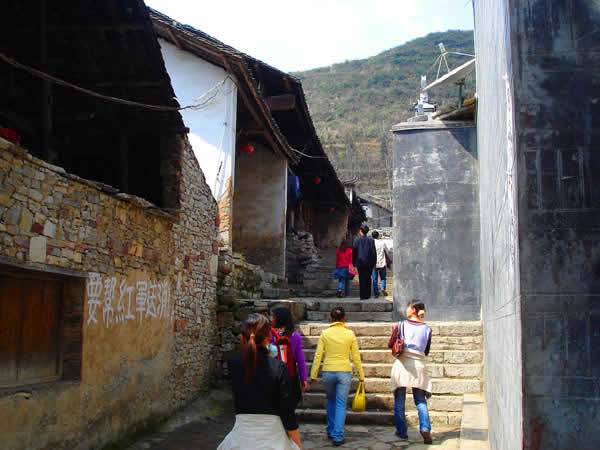 流水悠悠,人事蒼桑。到了近代,由于陸上交通的迅速崛起,水上交通漸漸衰落,小鎮(zhèn)慢慢地被人遺忘在峽谷之中了。失去了往日繁華的小鎮(zhèn),并沒(méi)有失去多少古色古香的本來(lái)面目,使我們今天能通過(guò)這殘缺的街道、建筑、店鋪,去感受她逝去的風(fēng)采。古老的風(fēng)火墻、底矮的吊腳樓,向游人展示著土家人的聰明才智,一條條青石板、一聲聲咚咚喹,在訴說(shuō)著古寨子過(guò)去的輝煌。