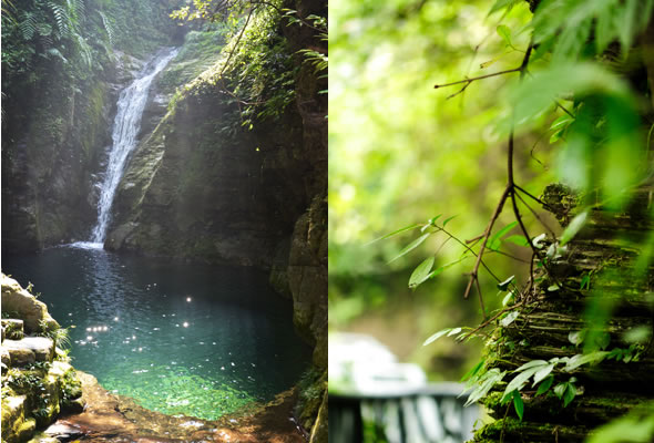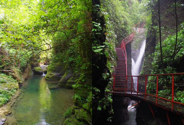 十八潭總名。稍作休憩,我們開始奔赴東線的景點(diǎn)。東線主要是以十八潭為主,下游有4潭:合潭、梳妝潭、魚潭、黑潭;中游有9潭:換衣潭、美人潭、石蛙潭、姊妹潭(3個(gè))、情侶潭(2個(gè))、二龍搶珠,上游有5潭:鬼谷神功(2個(gè))、幽潭、落銀潭(彩虹潭)、路邊潭。十八個(gè)潭深淺不一,淺則1米以上,深則4米左右,形狀各異,有的月牙形,有的豬腰狀,形狀不規(guī)則,石壁上水沖成潭,真是鬼谷神功,此處水質(zhì)細(xì)膩,加之綠林映襯,水色碧綠見底,猶如十八顆翡翠石鑲嵌在山林之間,涓涓溪流晶瑩剔透,飛流直下的瀑布,氣勢(shì)磅礴,蔚為壯觀, 下游的4潭,合潭、梳妝潭、魚潭、黑潭。合潭是仙女峽谷與十八潭的交匯處;梳妝潭的水清如明鏡,又因?yàn)樘秲蓚?cè)石頭的封閉,使這面鏡子靜止不動(dòng),很方便梳妝,照鏡子。在梳妝潭周圍,有一種植物屬于紅豆杉系列,它的形狀好似梳子,可以用來梳頭。魚潭可不能望文生義。魚潭,是在冬天的時(shí)候,所有的魚都聚集在這里過冬,除此之外,這個(gè)潭水淺見底,冬天魚苗聚集,是捕魚的好季節(jié)。黑潭,水深不見底,所以叫黑潭。現(xiàn)在已經(jīng)看不見梳妝潭、魚潭、黑潭了,你猜為什么?建水庫(kù),建水上樂園,淹沒了。 斷魂石的傳說。三國(guó)時(shí)期,高氏和蕭氏一對(duì)夫妻春節(jié)忙活,遇上了天門垮眼,受余震襲擊,打死了丈夫蕭氏。高氏思念丈夫,淚哭不斷,結(jié)果摔死潭中。人們經(jīng)常還能聽到哭聲傳來,不敢單獨(dú)行走,需成群結(jié)隊(duì)。后人為了鎮(zhèn)邪,雕刻一條蜈蚣驅(qū)趕哭魂,多年后,蜈蚣成精,天上打雷,巖石發(fā)光,遭雷所劈,成了斷魂石。 和尚姥,也就是丹灶峰,天門十六峰之一。相傳此峰為仙人化身,赤松子曾在此煉丹,許多詩(shī)人在此留下了美妙的詩(shī)篇,明代葉守禮《丹灶峰》: 懸崖峭壁隔塵寰,上有仙人學(xué)煉丹。 煉得丹成鶴已去,獨(dú)留丹灶在峰巒。 意思是說,在這險(xiǎn)峻秀麗的山峰上,赤松子潛心煉丹,不受塵世干擾,身心沉醉于秀美的山間,沉溺于丹藥的煉制之中。作者很是羨慕那種與世隔絕的超脫,那種執(zhí)著于自我理想的瀟灑,你羨慕不羨慕? 竹林叢生。我們要學(xué)習(xí)竹子的精神,中空、謙卑;我們要學(xué)習(xí)竹子的精神,抱團(tuán)生長(zhǎng);我們要學(xué)習(xí)竹子的精神,破土而出,節(jié)節(jié)高。 向家塔。打造農(nóng)耕養(yǎng)生游的地方。種田、種菜、種花,農(nóng)家餐館。 爛泥巴根。爛泥巴根和馬桑樹是同科,是這里獨(dú)特的一種樹。馬桑樹亦稱“千年紅”、“馬鞍子”,屬落葉灌木,馬桑樹多枝叢生,一簇一簇的,枝葉像傘蓋,因此“馬桑樹兒搭燈臺(tái)”。春風(fēng)一吹,滿山的馬桑樹、爛泥巴根就吐翠滴綠,顯示出強(qiáng)勁的生命力。打油詩(shī)一首: 青青枝條四方走, 肥肥大葉落上頭, 身在路邊無(wú)人問, 冬去春來樂悠悠。 秋天死亡,春天長(zhǎng)勢(shì)更加茂盛,它的新生是通過死亡實(shí)現(xiàn)的。山川如此,植物也是如此,這里的一草一木無(wú)不透露著道家那種齊生死、等貴賤的精神。 這叫“常道”亭,“道可道,非常道”,據(jù)說是白狐與劉海相遇的地方。吊橋。 十八潭各具特色。 中游有9潭。第五潭叫換衣潭。巖石聳立,霧氣氤氳,巖壁上布滿水汽,猶如雨下。又因過道狹窄,行人需彎腰通過,未免雨水打濕衣裳,在此就要脫下身上衣物,通過后在第六潭再穿上。因此第六潭又叫美人潭,很幽深神秘的。第七潭叫石蛙潭,水淺,又比較平穩(wěn)、安全,春天產(chǎn)籽。余音回響,猶如蛙鳴,給人“聽取蛙聲一片”的錯(cuò)覺。 對(duì)面巖壁叫“臘肉鋪”,那條自上而下的溪流叫“酒長(zhǎng)流”,客人來了,咱土家人熱情,臘肉下炕,苞谷燒,喝兩口! 第八潭第九潭叫情侶潭,比較隱蔽,他倆靜悄悄地談著情話,我們快走,不要打攪他們。 第十潭、十一潭、十二潭叫姊妹潭。下面那個(gè),水淺淺的,溫溫的,是幺妹潭,中間那個(gè)是二哥潭,上面那個(gè)是大哥潭。 潭的旁邊有珍稀植物馬蘭花,馬蘭花又名蝴蝶花、蝴蝶蘭,為多年生宿根草本花卉,根莖短粗,肥壯;ù笮缕,花色絢麗,鮮艷奪目;ㄓ兴{(lán)、白、黃、雪青等色;ㄆ5-6個(gè)月,每次花可開花7-10天,頗耐觀賞。馬蘭花在我國(guó)栽培已有2000多年的歷史,目前歐、亞、非3洲均有分布,品種極多,難以計(jì)數(shù)。此花按植株高度不同可分3種類型:矮株型僅18-25厘米,中株型高25-70厘米,高株型可高達(dá)120厘米。馬蘭花喜陽(yáng)光,適栽于背風(fēng)向砂質(zhì)土壤中。 馬蘭開花的童謠。他們?nèi)⒚眯r(shí)候情感深厚,常常一起跳皮筋。大家會(huì)跳嗎?會(huì)唱嗎? 小汽車,滴滴滴,馬蘭開花二十一, 二五六二五七,二八二九三十一, 三五六三五七,三八三九四十一, 四五六四五七,四八四九五十一, 五五六五五七,五八五九六十一 ! 還有紅豆杉,像梳頭的篦子,叫“篦子三尖杉”。還有蘭心草,中草藥,空中飄來蘭花的香氣,山谷中峭壁的蘭花,如芳芳人品善良高雅。蘭花如人品有宜人的香氣,蘭花有撩人的幽香,任何花卉的香氣都不能與蘭花比。這幽香時(shí)隱時(shí)現(xiàn),時(shí)濃時(shí)淡,時(shí)遠(yuǎn)時(shí)近。飄蕩在老道灣山谷中,給人清新和愉快的感受。 蘇轍有詩(shī):“谷深不見蘭生處,追逐微風(fēng)偶得之”。 還有大葉榕、玉葉金花、秋海棠、臘蓮繡球、四字馬蘭、紅