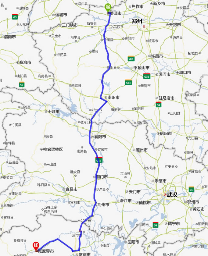 濟(jì)源去張家界自駕車(chē)自助游線路圖全程高速):