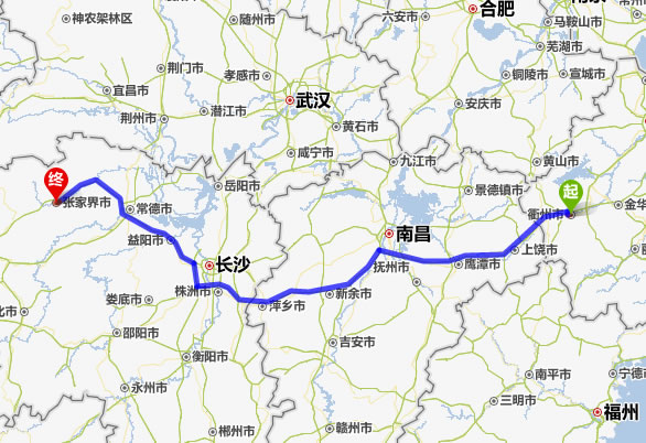 現(xiàn)在位置:張家界旅行社->交通指南->自駕車路線 -> 衢州到張家界旅游自駕車線路,衢州去張家界自己開(kāi)車要多長(zhǎng)時(shí)間,有多少公里