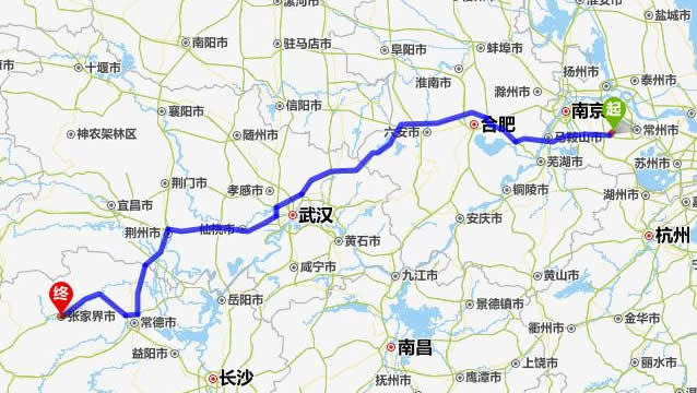 金壇去張家界自駕車(chē)自助游線路圖全程高速):