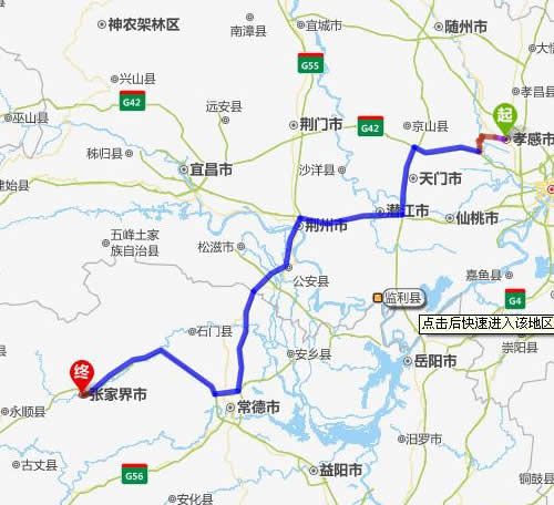 現(xiàn)在位置:張家界旅行社->交通指南->自駕車(chē)路線(xiàn) -> 孝感到張家界旅游自駕車(chē)線(xiàn)路-孝感去張家界自己開(kāi)車(chē)要多長(zhǎng)時(shí)間,有多少公里