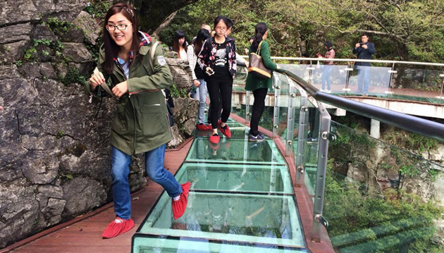 【張家界大峽谷玻璃橋】號稱世界最長、最高的全透明玻璃橋,玻璃橋總長430米、寬6米,橋面距谷底約300米,可站800人。橋面全部采用透明玻璃鋪設(shè),橋中心有全球最高的蹦極臺,整個工程無鋼筋支架,是一種全玻璃結(jié)構(gòu)的橋梁。玻璃橋建成后,將成為世界首座斜拉式高山峽谷玻璃橋;并創(chuàng)下世界最高最長玻璃橋、首次使用新型復(fù)合材料建造橋梁等多項世界之最!