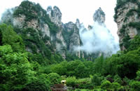 張家界的氣候適中,地處北中緯度,屬中亞熱帶山原型季風(fēng)濕潤(rùn)氣候。因此,雨量豐沛(歷年平均降水量為1400毫米),陽(yáng)光充足,無(wú)霜期長(zhǎng),嚴(yán)寒期短,年平均氣溫16℃左右。夏季最熱月氣溫27℃ ,冬季最冷月平均氣溫為4.3 ℃(以1月最冷,極端氣溫在零度左右到4℃)。這樣的氣候,不僅適合動(dòng)物的繁衍與植物的生長(zhǎng),更適合觀光旅游。